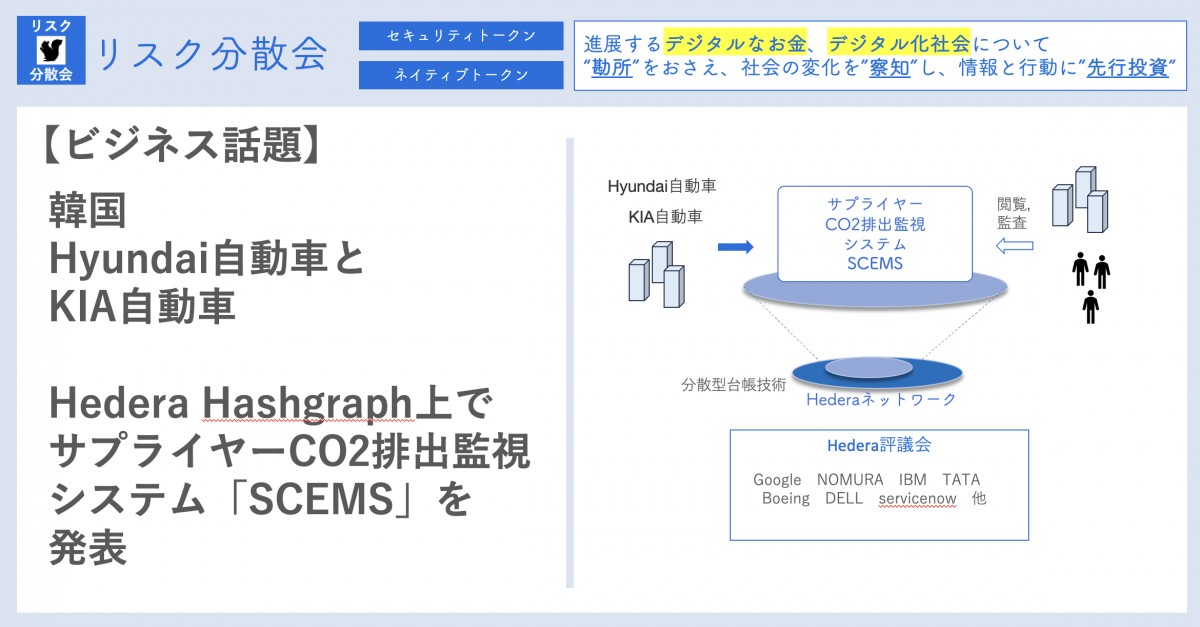 1. 韓国のHyundai自動車とKIA自動車がブロックチェーンベースの「サプライヤー CO2 排出監視システム (SCEMS) 」を Hedera メインネット上で開始
