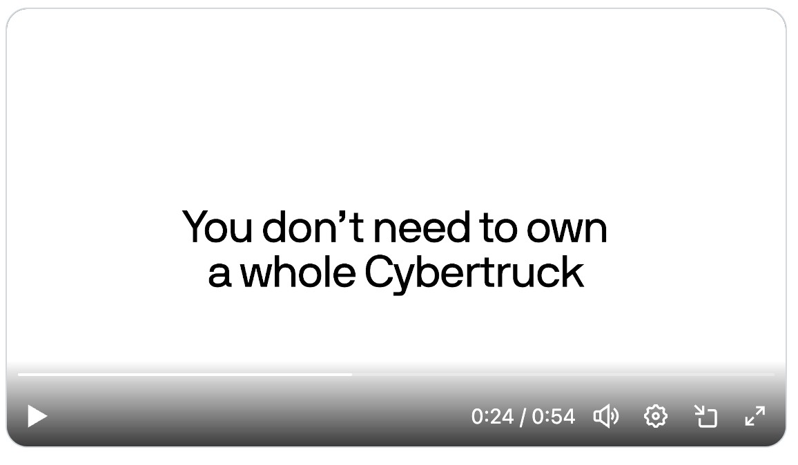 「あなたはトークン化されたサイバートラックのピース(トークン)を持つだけで良い」